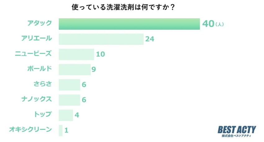 今回のアンケート調査から、多くの人が「アタック」と答えており、その理由として「汚れがよく落ちて白く仕上がる」ことが挙げられました。また、「アリエール」を選んだ人たちは、「香りが良く、汚れもしっかり落ちる」といった意見が寄せられました。