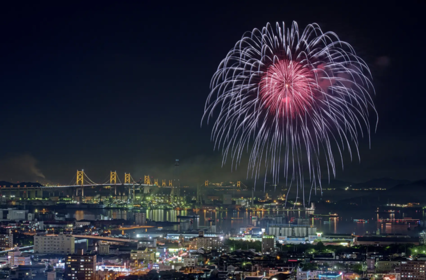 瀬戸大橋開通35周年を祝い、中四国最大級の15,000発の花火が夜空を彩る!「第58回さかいで大橋まつり」が開…