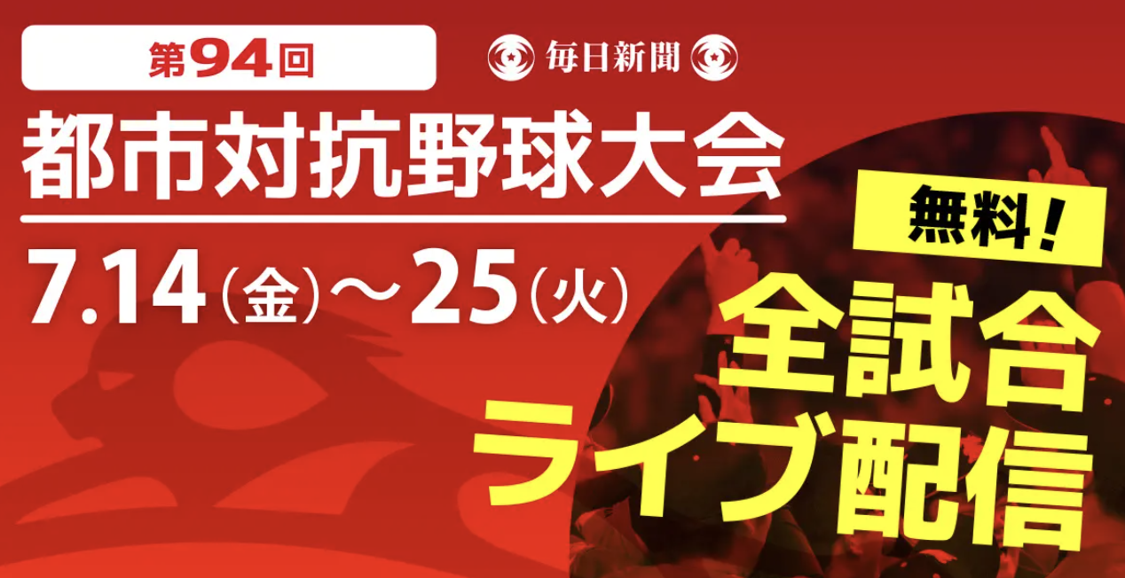 毎日新聞社は、7月14日(金)から東京ドームで開催される第94回都市対抗野球大会を、毎日新聞デジタル内の公式サ…