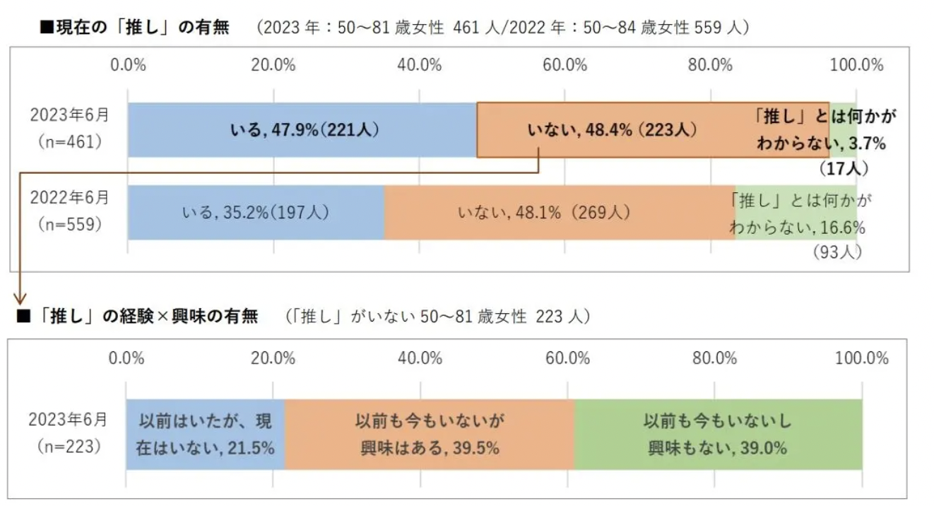 【調査レポート】シニア女性の「推し」実態調査:推しのいるシニア女性が増加、年間平均使用額は約10万円