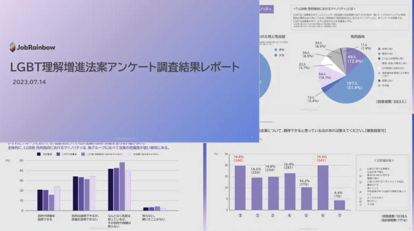 株式会社JobRainbowが、LGBTQ+当事者約1000人にアンケート調査を実施し、「性的指向及びジェンダ…