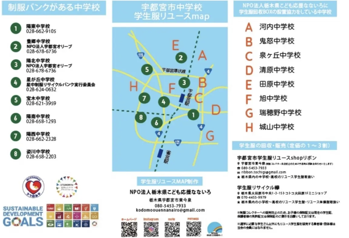 NPO法人「栃木県こども応援なないろ」が、全国初となる「宇都宮学生服リユースMAP」をリリースしました!この画…