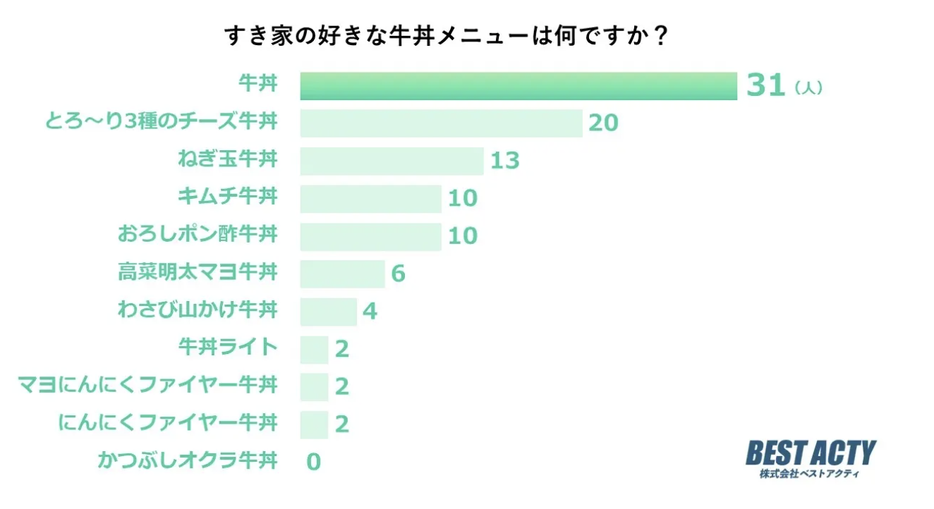 アウトドアメディア「TACKLE NOTE」運営の株式会社ベストアクティがすき家の牛丼メニューについてアンケー…